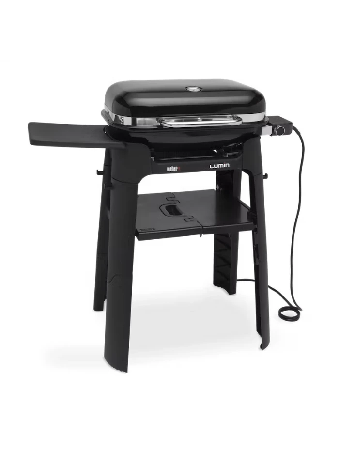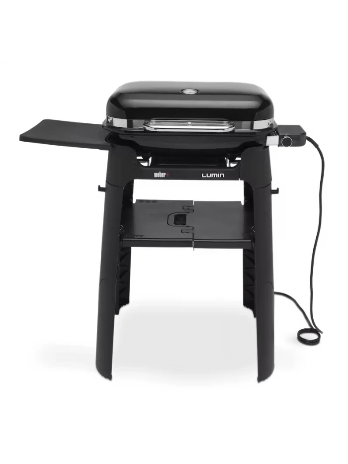 Moderne et pratique, le nouveau barbecue électrique Lumin Black et support avec pieds de Weber est conçu pour s’adapter à vos goûts et à votre espace extérieur.