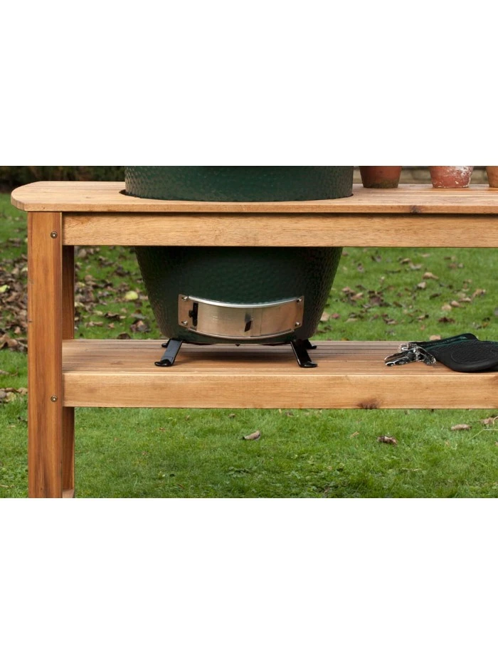 Cet accessoire a été tout spécialement conçu pour soutenir votre EGG tout en protégeant de la chaleur votre table, votre îlot de cuisine ou la cuisine d’été que vous avez construite vous-même. Autre avantage : le berceau de table évite également les traces de brûlure sur la table.