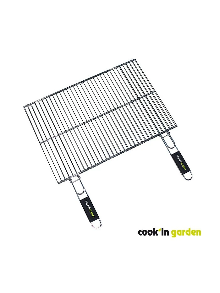 Découvrez les joies du barbecue au charbon grâce à cette double grille rectangulaire en acier chromé. Résistante aux flammes, elle dispose de 2 manches en matière « soft-touch » qui vous garantiront un bon maintien et une meilleure manipulation.