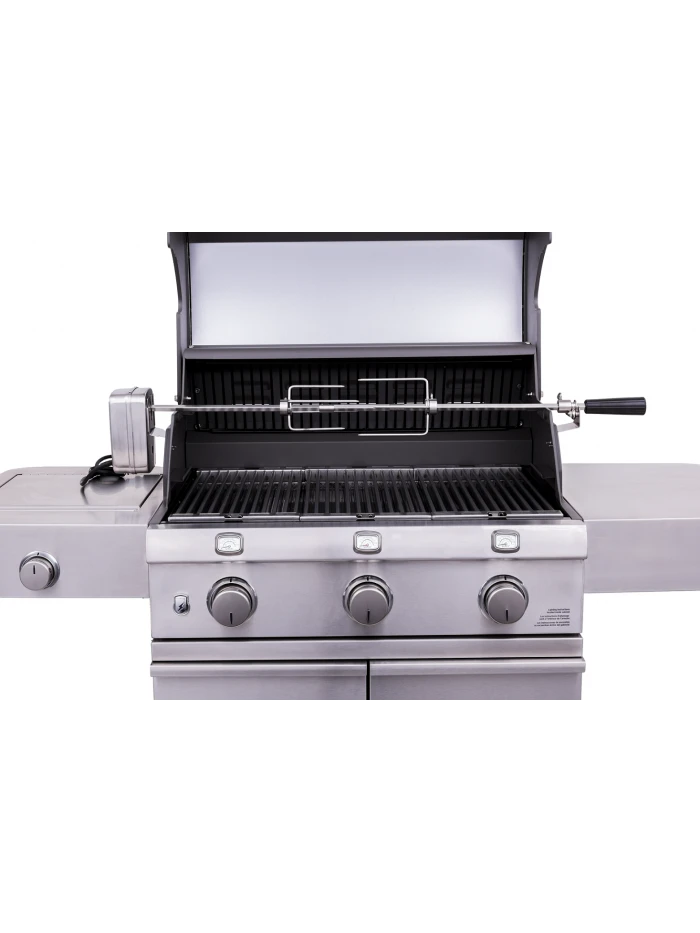Ce kit contient un moteur électrique, deux fourchettes avec 4 broches, des roulements à rouleaux, des supports de montage, une tige extensible pour gril 2-3-4 brûleurs.
