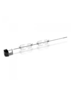 Conçue pour s’adapter à la cuve des barbecues à gaz des séries Genesis® II, Genesis® II LX 400 et 600, la rôtissoire Weber comprend un axe en acier inoxydable de 117 cm, deux fourches permettant d’accueillir des aliments de grosses tailles, les accessoires nécessaires et un moteur électrique qui fait tourner lentement les aliments au-dessus des grilles de cuisson.