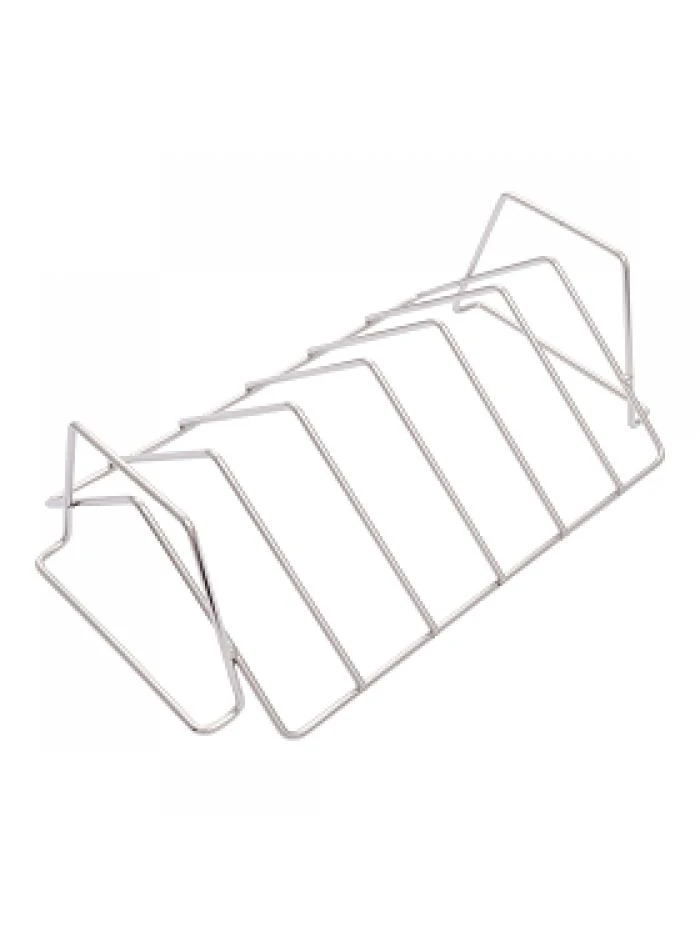 Le support pour côtelettes et rôti Grill+ Char-Broil est entièrement fabriqué en acier inoxydable et peut être utilisé des deux côtés pour une expérience de cuisson optimale, ce qui le rend parfait pour votre four ou votre barbecue.