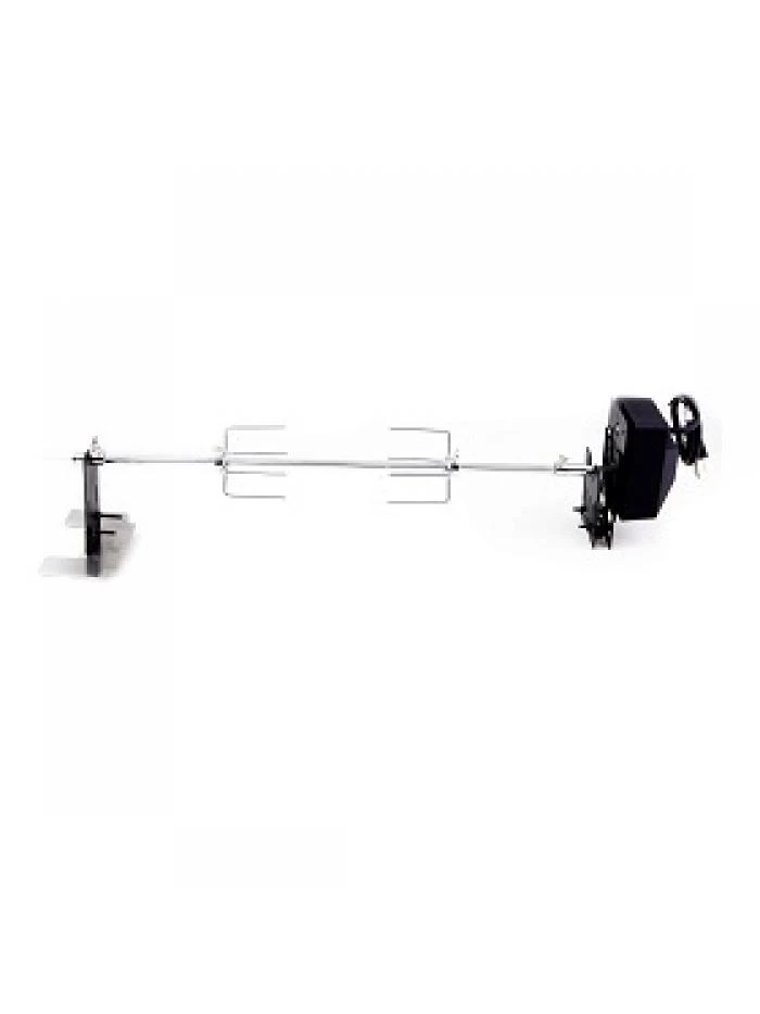 Le tournebroche Char-Broil est actionné par un moteur électrique robuste. Deux fourchettes à viande à quatre branches maintiennent les rôtis, les jambons et les volailles en place.